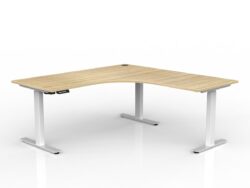 OL Agile Electric Height Adjustable 90° Shared Workstation – White Top White Frame – 1800 x 1800/750 (2 Piece Top) / With Cable Tray