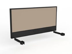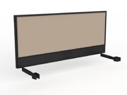 Studio screen with ducting to fit Agile individual desk. Black powdercoated 50mm frame and lightweight, pinnable core with Breathe fabric. Includes desk hung screen brackets. Optional bracket-mounted cable tray. Features 50mm thickness Breathe fabric all over Pinnable core Includes desk