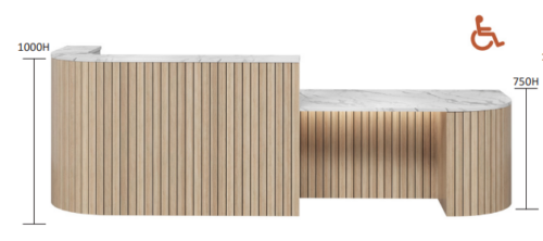 The Orient Reception boasts a refined design that effortlessly combines elegance with enhanced mobility access. Features Mobility Access Reception Desk
