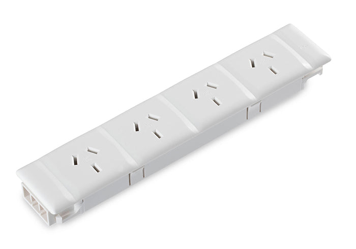 Quad Soft Wired GPO is a 10amp auto switched power module that offers significant installation benefits as no tools are required for thin or thick panel mounting. The installation efficiency of this product offers excellent labour savings.