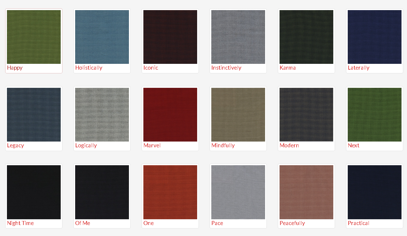 - Available Options: House Fabric, Think Plus Fabric, Pacifica Standard Vinyl and Studio Encore Vinyl. Refer to the colour swatch.