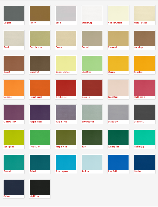 - Available Options: House Fabric, Think Plus Fabric, Pacifica Standard Vinyl and Studio Encore Vinyl. Refer to the colour swatch.
