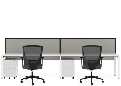- Axis Shared Double-sided Straight-line Desk layout to suit 6 worktops of 1800mm x 750mm