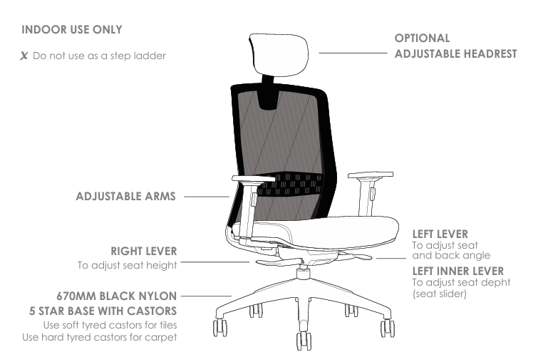 - Adjustable seat depth (seat slider)
