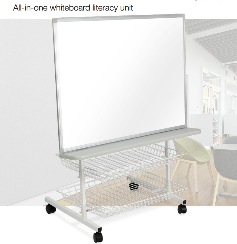 A versatile, mobile storage and teaching centre, perfect for small group literacy sessions and organising resources. Back storage for protection of books, 2 baskets at the base. Height is fully adjustable to four distinct levels, using pop-pins for easy change.
