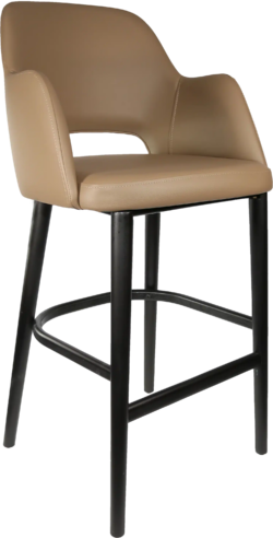 FL Sorbet Vinyl Upholstered Timber Legs Hospitality Barstool – Taupe / Black
